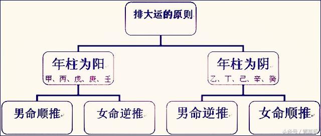 大运分顺行和逆向行驶二种,故最先务必明确其逆顺,若小伙阳年生人,或女人阴年生人,则为顺行大运;若小伙阴年生人,或女人阳年生人,则为逆向行驶大运。说白了阳年阴年,就是指四柱中老年干的阳阴来讲,如甲年为阳,乙年为阴等。