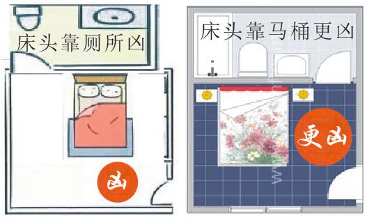 图八、不可床头贴靠厕所墙壁,尤其不能床头贴靠马桶、水龙头,也不可厕所卫生间上方或是下方的房间做卧室。