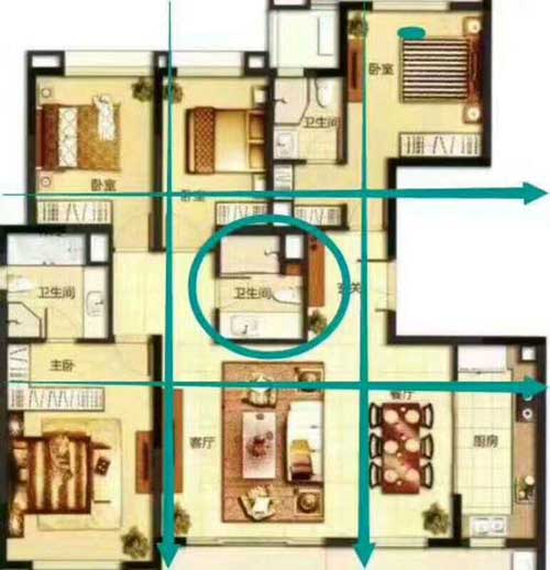 第五,住宅中心位置不能装水龙头。这一点与“厨厕居中、风水大凶”是相对应的,如果厨房、浴厕卫生间在房屋的中心点位置,厨房或卫生间的水龙头必然也在住宅中心。