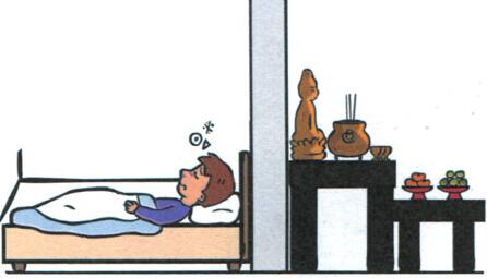 另外还需要注意,神台供桌后方不宜为卧室。否则容易夫妻感情失和、经常发生口角;若是单身者的卧房,则会影响其感情生活,或是有晚婚、不婚的情况