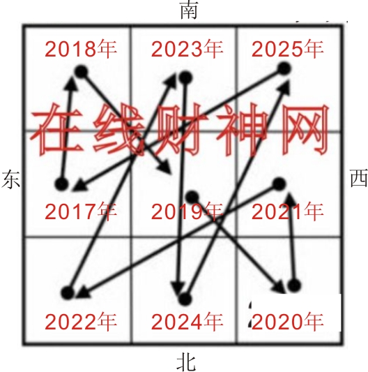 图一、在线财神网风水财位年年份流转图